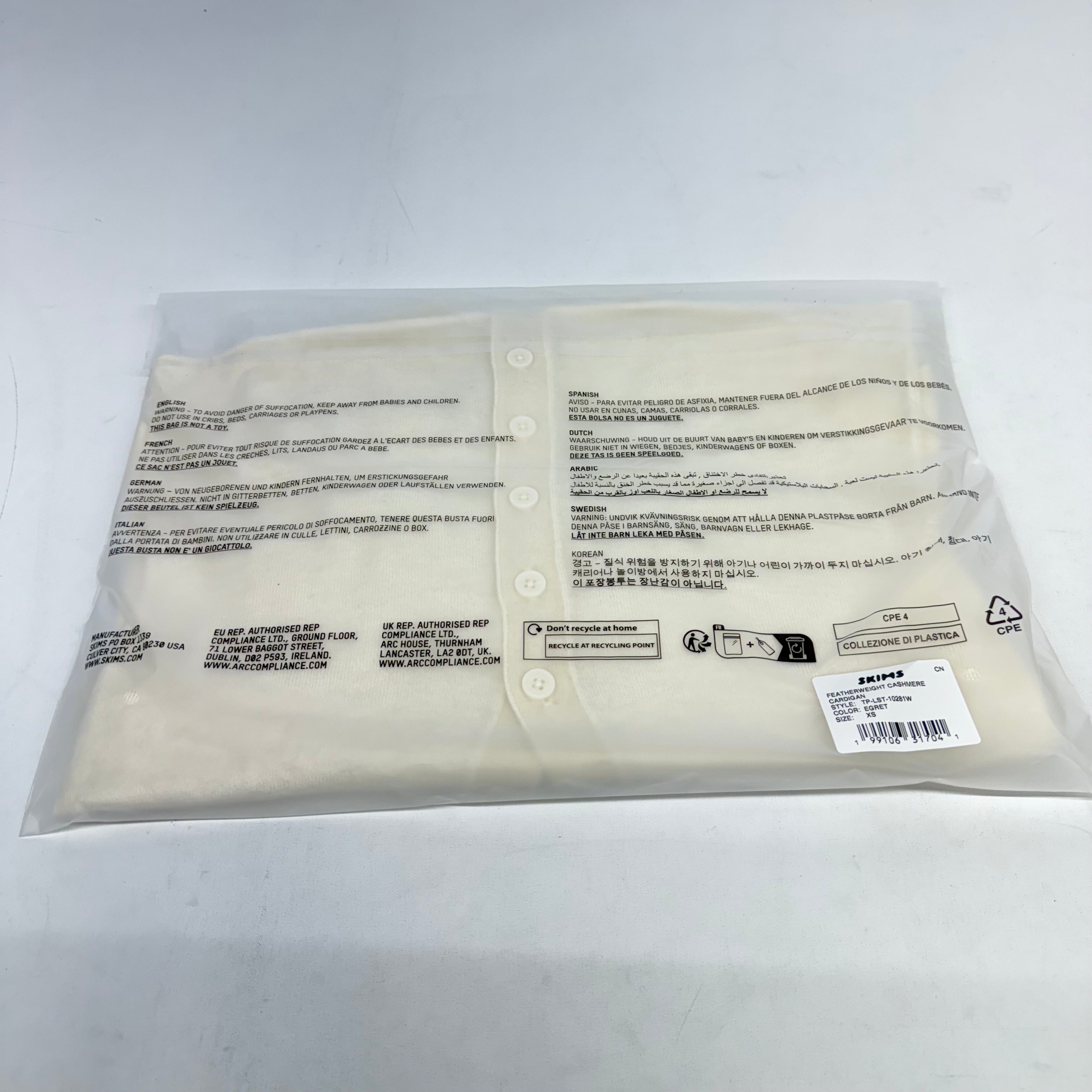SKIMS Featherweight Cashmere Cardigan Pearl White Size XS New